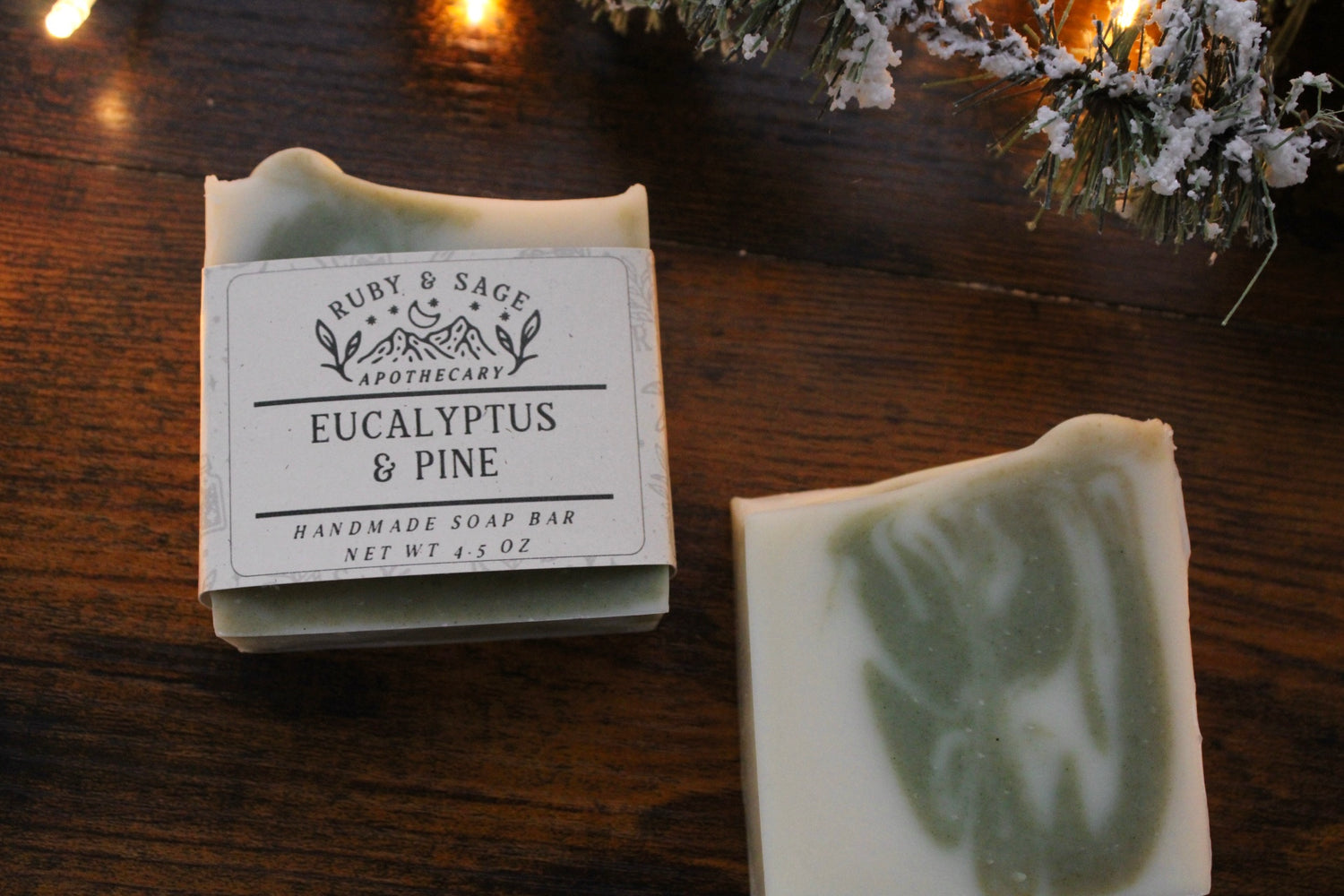 A wonderfully woodsy and refreshing bar made with natural oils and butters that help to not only cleanse the skin, but to leave it nourished. Scented in a refreshing blend of Eucalyptus, Pine, Balsam, Rosemary and Cedarwood therapeutic grade essential oils and colored with organic spirulina and french green clay.